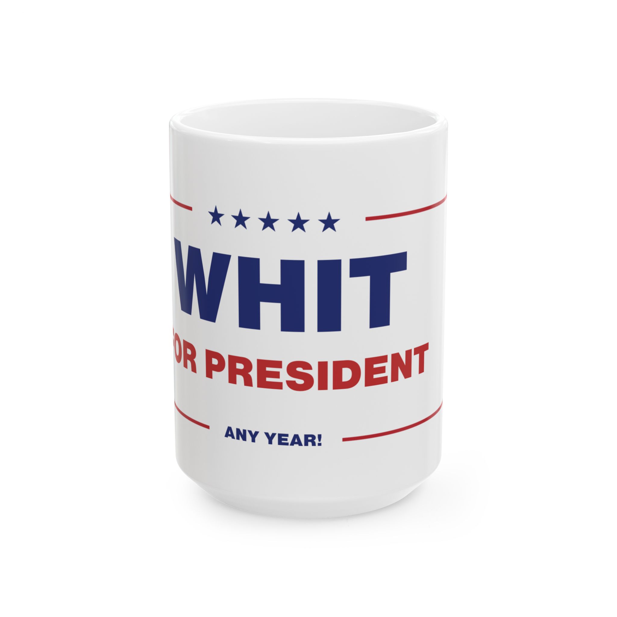 This exciting new brand is fresh off the presses here at AWB: Whit for President! Do you wish Whit were your president? Support his non-existent campaign with our mug! (And confuse all of your friends). Available in two sizes: 11oz (0.33 l) and 15oz (0.44 l)